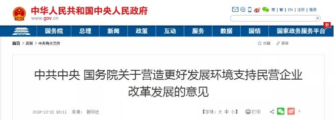12月22日,《中共中央、國務院關于營造更好發展環境支持民營企業改革發展的意見》正式發布。這是立足于民營企業改革發展的首個中央文件!